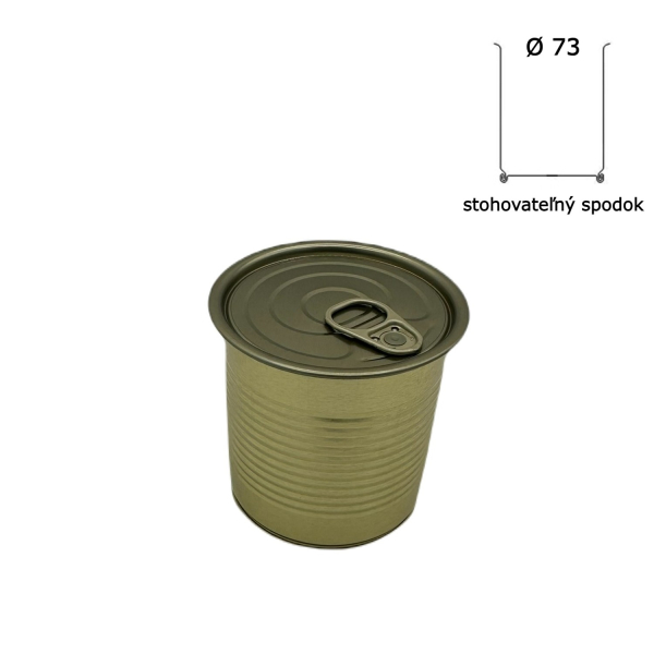 Konzervový obal s rozmerom Ø73/70x81.2, s objemom 300 ml, s trhacím viečkom Ø73 mm.