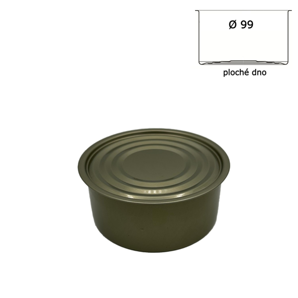Konzervový obal s rozmerom Ø99/47, s objemom 305 ml, s obyčajným viečkom Ø99 mm.