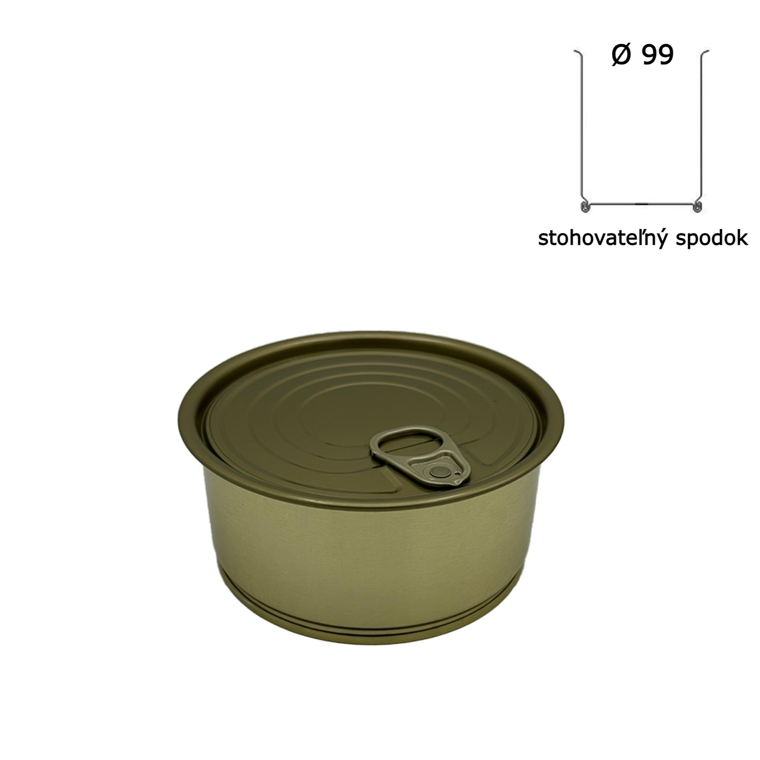 Konzervový obal s rozmerom Ø99/96x47, s objemom 305 ml, s trhacím viečkom Ø99 mm.